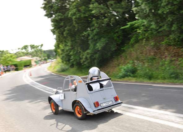 La 2CV de Soeur Clotilde du gendarme de Saint-Tropèze finit en deuxième position avec Emeric qui vient de Boisseron aux commandes.